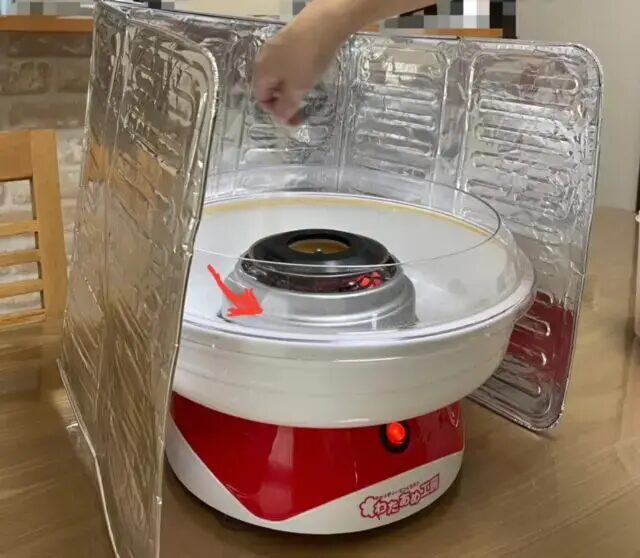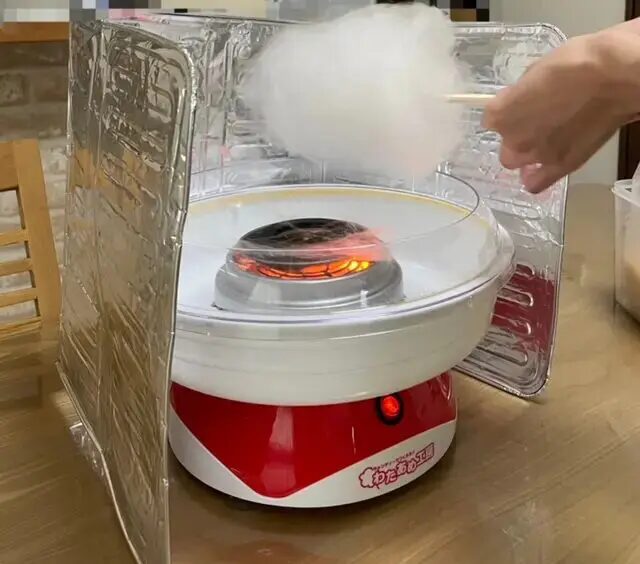 わたあめを作る時、わたあめが多少は、まわりに飛び散ります。