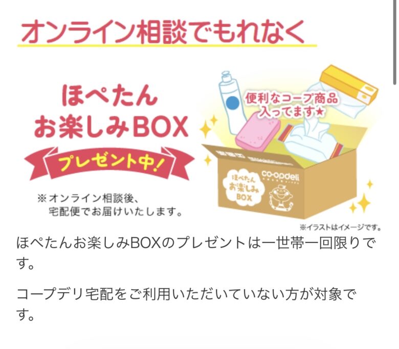 1.オンライン相談で『ほっぺたんお楽しみBOX』