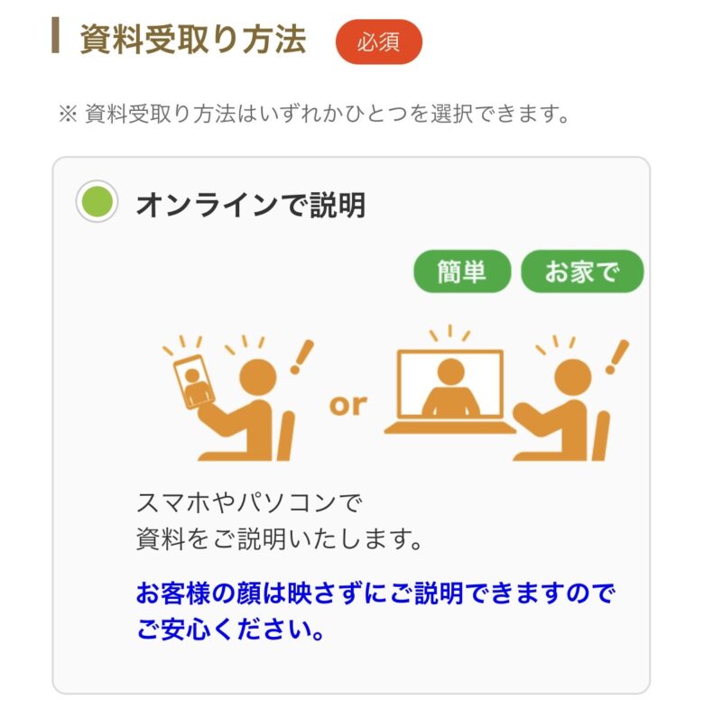 上記3つから1つ選べますので、「オンライン説明」にチェックしましょう。