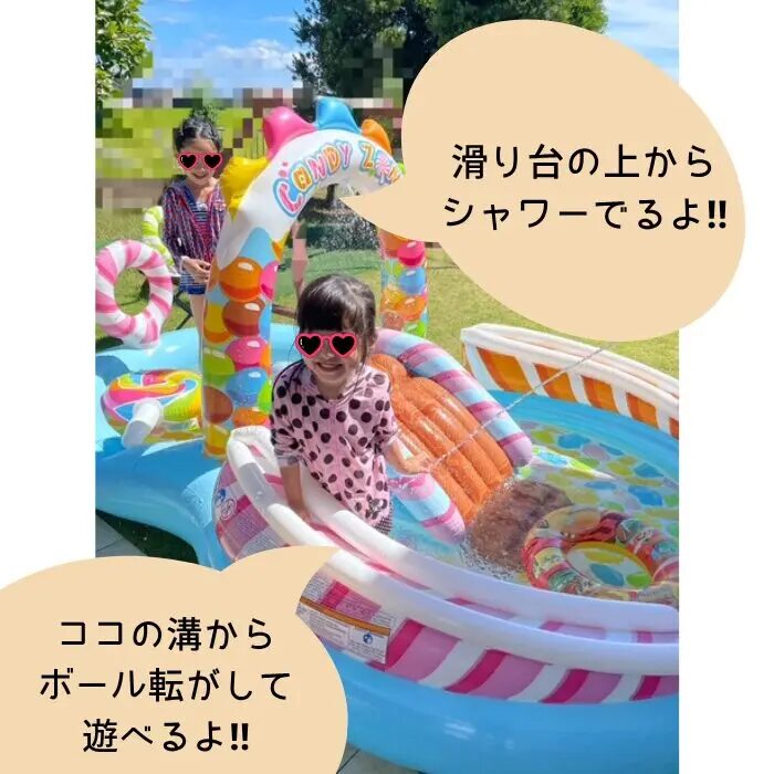 お庭でプールができるって、人混みを気にしなくていいし手軽にできるのが嬉しい点。
