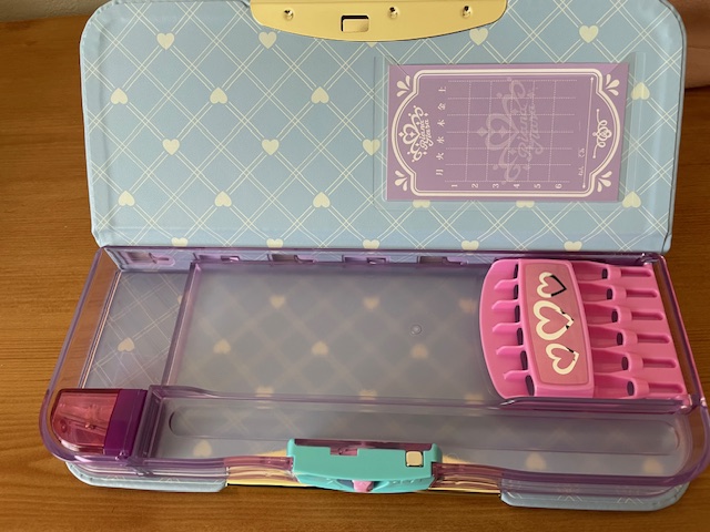 長女の時は、どういうものが良いかわからなくて学校注文しましたが(青と黄色のプラスチック製)、入学式の時に教室に入ったら、ピンクやラベンダー色のお道具箱を見かけました。
