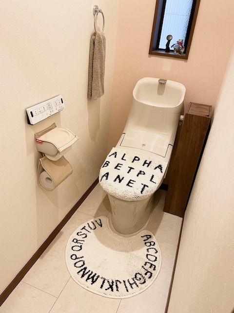 我が家も1階、2階とデザイン違いのトイレマット・カバーを使用して楽しんでいます。