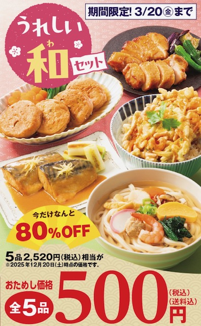 嬉しい和セット5品が500円でお買い得にお試しできます。