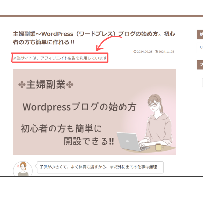 アフィリエイトなどを利用する場合は、「景品表示法に基づく表記」などの注意事項がありますので設定してから始めましょう。