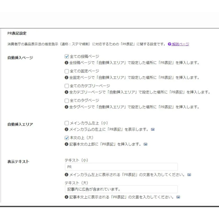 その時は、「景品表示法に基づく表記」が必要になりますので設定を忘れないようにしましょう。